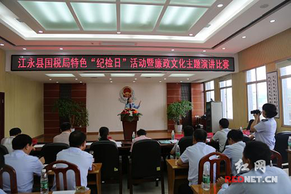 (江永县国税局举行了廉政文化主题演讲比赛现场。)